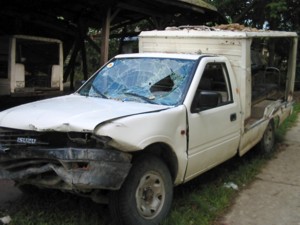 The heavily damaged PNP patrol vehicle. |